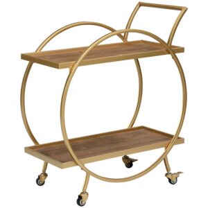 FirsTime & Co. Gold and Brown Odessa Bar Cart, Glam, Metal, 27.5 x 14 x 33 in