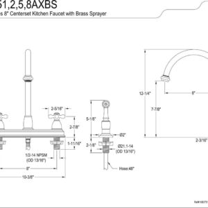 Kingston KB3751AXBS Restoration Two-Handle 4-Hole 8″ Centerset Kitchen Faucet with Brass Sprayer in Polished Chrome