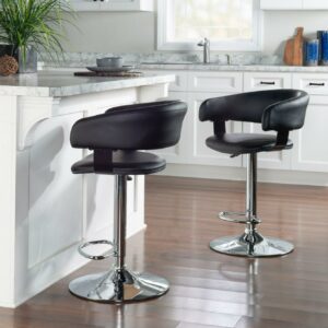 Linon Curved Low Back Indoor Round Metal Pedestal Bar Stool with Adjustable Height and Swivel, Chrome/Black Faux Leather