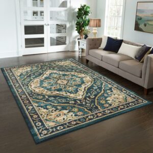 Mainstays Traditional Persian Teal Blue Print Indoor Area Rug, 7′ x 10′